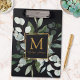 Monogram Watercolor Tropical Eucalyptus Black Klemmbrett