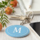 Ein Schlüsselanhänger mit weißem Monogramm auf hellblauem Hintergrund. Passen Sie den Schlüsselanhänger mit Ihren eigenen Initialen oder Initialen, Farben, u.a. an.