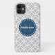 Monogram, White Blue Modern Circles Case-Mate iPhone Hülle