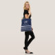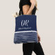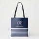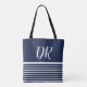 Eine stilvolle, moderne und mit Monogramm Tasche mit waagerechten Marinebändern, personalisiert mit ihrem Namen und ihren Initialen (handgeschriebener Schriftart)