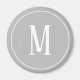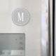 Ein runder Magnet mit einem weißen Monogramm auf grauem Hintergrund. Passen Sie den Magneten mit Ihren eigenen Initialen oder Initialen, Farben, unter anderem mit anderen Optionen an.