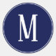 Monogram White on Navy Blue Round Aufkleber