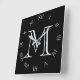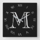 Monogram White Roman Numbers on Black Wccn Quadratische Wanduhr