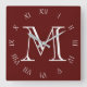 Monogram White Script römische Zahlen auf Red Wccn Quadratische Wanduhr