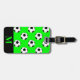 Gepäckmarke mit schwarz-weißen Fußballbällen, Monogramm-Initial(en)/Name und Adressinformationen auf einem limiengrünen Hintergrund. Personalisieren Sie Ihre Monogramm-Initial(en)/Name, Name und Adressinformationen mithilfe der einfachen Vorlagen. Schriftart, Schriftart, Schriftart und Kalkgrün sind anpassbar. Ideal für Sportler.