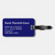 Gepäckanhänger mit schwarz-weißen Fußballbällen, Monogramm-Initial(en)/Name und Adressinformationen auf dunkelmarineblau-blauem Hintergrund. Personalisieren Sie Ihre Monogramm-Initial(en)/Name, Name und Adressinformationen mithilfe der einfachen Vorlagen. Schriftart, Schriftart, Schriftart und dunkelmarinenblaue Hintergrundfarbe sind anpassbar. Ideal für Sportler.