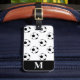 Gepäckmarke mit schwarz-weißen Fußball-Bälle, Monogramm-Initial/Name und Adressinformationen auf weißem Hintergrund. Personalisieren Sie Ihre Monogramm-Initial(en)/Name, Name und Adressinformationen mithilfe der einfachen Vorlagen. Schriftart, Schriftart, Schriftart und weiße Hintergrundfarbe sind anpassbar. Ideal für Sportler.