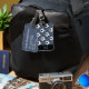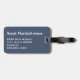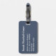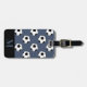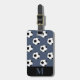 Gepäckmarke mit schwarz-weißen Fußball-Bälle, Monogramm-Initial/Name und Adressinformationen auf blauem jeanblau Hintergrund. Personalisieren Sie Ihre Monogramm-Initial(en)/Name, Name und Adressinformationen mithilfe der einfachen Vorlagen. Schriftart, Schriftart, Schriftart und Blau-Jeans-Hintergrundfarbe sind anpassbar. Ideal für Sportler.