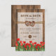 Monogram Wood Hearts with Red Tulips Save The Date