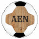 Ein mit Monogramm, rustikaler, ländlicher schwarzer Fußball aus Holz, erhältlich mit oder ohne Ständer.