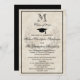 Schwarz mit Marmor Creme Muster Hintergrund Design. Klassische mit Monogramm Single Buchstaben Initial (Ihre Wahl des Vor- oder Nachnamens) ist prädestiniert und gut aussehend für die männliche oder weibliche Uni, die Fachschule oder jeden Hochschulabsolventen. Dieses preisgünstige und preisgünstige Abschluss-Angebot im modernen klassischen Stil oder die Abschluss-Zeremonie-Einladung eignet sich hervorragend für Hochschulabsolventen oder Hochschulabsolventen, für ein offenes Haus, einen lässigen Lunch-Empfang oder ein Party. Feiern Sie die monumentale Errungenschaft eines Bachelor's Diplom, assoziierte Diplom, Master oder Doktortitel. Klassisches Design mit subtilem Laurel-Kranz-Emblem, personalisiertem Monogramm und elegantem Schriftsatz. Sehr einfach zu personalisieren mit Ihren Informationen. Wählen Sie Ihre Farbe, indem Sie "weiter anpassen" wählen und Text- und Hintergrundfarben auf Vorder- und Rückseite ändern. Der klassische Abschluss im formalen Stil lädt Männer und Frauen, Mädchen und Jungen jeden Alters ein.