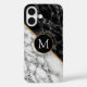 Personalisierte Monogram iPhone Cases mit schwarz-weißem Marmorstein - Add Your Letter / Logo / Year / Number / More ! MIGNETER Entwurf