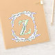 Ein romantisches und elegantes Design mit mit Monogramm Buchstaben gerahmt von Eukalyptus und Lavendel in Aquarellfarbe.