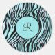 Mit Monogramm Personalisierter schwarzer und Aquamarin türkisfarbener Zebra Print Classic Round Sticker Umschlag Aufkleber