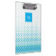 Fügen Sie Ihrem Arbeitsbereich eine zeitgemäße Touch hinzu, mit dieser geometrisch blau-grünen Diamantenmusterklipptafel mit einem fett formatierten Monogramm. Personalisieren Sie es mit ein oder zwei Initialen.