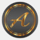 Monogramm A-Z - Metallisches Gold auf schwarzem Sa Runder Aufkleber