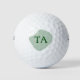 Eine hellgrüne Blase bildet die Grundlage für Ihre Anfangsbuchstaben in dunkelgrüner Serifenschrift auf diesen personalisierten Golfbällen. Die elegante, saubere Schriftart schafft ein klassisches, minimalistisches, aber dennoch spielerisches Design.