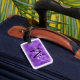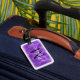 Gepäckanhänger lila. Abstrakte Kunst im Hintergrund. Bearbeiten Sie den Initial und den Namen, um ihn personalisiert zu machen. Geschenkidee.