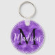 Benutzerdefinierte Schlüsselketten im lila. Abstrakte Kunst im Hintergrund. Bearbeiten Sie den Initial und den Namen, um ihn personalisiert zu machen. Geschenkidee.