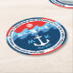 Monogramm-Anker bewegt Boots-rotes weißes blaues Runder Pappuntersetzer