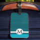 Monogramm Aqua Blue und White Stripes Gepäckanhänger