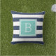 Monogramm Aqua und Navy Stripe Außenbereich Kissen Für Draußen