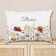 Einführen in unsere Monogram Aquarell Wildblume Hübsch Bläserakzent Kissen. Mit Aquarellbildern von Blume und Texten, die im eleganten Boho-Stil personalisiert werden können. Geeignet als Geschenk für Naturliebhaber.