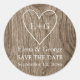 Monogramm auf Herz-Holz-Hochzeit Speichern Sie das Runder Aufkleber