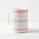 Monogramm auf moderne rosa graue Cremestreifen Kaffeemaschine Tasse. Die weißen, schicken Streifen in Rosa, die cremige Vanille und das weiche Taubengrau bilden den Hintergrund für Ihr modernes Monogramm. Entworfen von Zazzle pro Designer BK Thompson exklusiv für Cedar und String.
