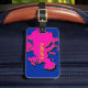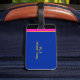 Karte von Europa in starkem magenta rosa und goldgelb auf einem tiefblauen Meeresgrund. Eine Gepäckmarke, die Sie mit Ihren Initialen an der Vorderseite personalisieren können (geben Sie einfach Ihre Initialen oder Namen, um das Wort EUROPE zu ersetzen). Wenn Sie Ihren Namen, Ihre Adresse und Ihre Telefonnummer in das Eingabefeld eingeben, erscheinen Ihre Angaben auf der Rückseite des Tags.