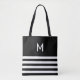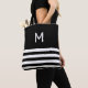 Schöne moderne schwarz-weiße Streifen mit Monogramm Tote Bag. Elegante Frauen Schwarz-weiße Einkaufstasche.