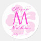 Monogramm-Aufkleber für den rosa Hibiskus Runder Aufkleber
