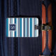 Monogramm aus blauem und weißem Multistreifen Gepäckanhänger