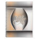 Dieses schöne Notizbuch ist mit einem sehr realistischen, gebürsteten Stahlimitation mit Schatten und Highlights dekoriert. In der Mitte, wie eine Herzöffnung, öffnet sich das Metall, um Ihr Monogramm zu enthüllen, geschrieben mit schönen Buchstaben in Drehbuch und sans serif Schriftart, elegant verstrickt und deren Schatten und Lichter Prägung und Gravur imitieren. Ein sehr modernes und schönes Objekt, das jeden überraschen wird, den Sie ihm zeigen!