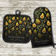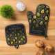 Monogramm aus Liebe Avocado Pattern Schwarz Ofenhandschuh & Topflappen-Set