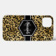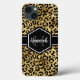 Chic gold und schwarz leopard Druck iPhone 13 Gehäuse mit einem individuelle Name und Monogramm Vorlage. Ein niedlicher und trendiger Safari-Tiermuster-Hintergrund, der mit einem eigenen Stück Personalisierung überragt wird.