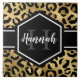Chic gold und schwarz leopard drucken große Keramik Fliesen mit einem individuelle Name und Monogramm Vorlage. Ein niedlicher und trendiger Safari-Tiermuster-Hintergrund, der mit einem eigenen Stück Personalisierung überragt wird.
