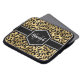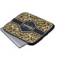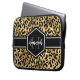 Chic gold und schwarz leopard bedrucken 13 Zoll Laptop Ärmel mit individuelle Name und Monogramm Vorlage. Ein niedlicher und trendiger Safari-Tiermuster-Hintergrund, der mit einem eigenen Stück Personalisierung überragt wird.