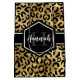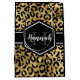 Schick Gold und schwarze Leoparden Geschenktasche mit individuelle Name und Monogramm Vorlage. Ein niedlicher und trendiger Safari-Tiermuster-Hintergrund, der mit einem eigenen Stück Personalisierung überragt wird.