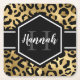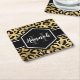 Chic Untersetzer aus Gold und schwarzem Leopard mit individuelle Name und Monogramm-Vorlage. Ein niedlicher und trendiger Safari-Tiermuster-Hintergrund, der mit einem eigenen Stück Personalisierung überragt wird.