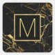 Monogramm aus schwarzem und goldenem Marmor Quadratischer Aufkleber