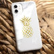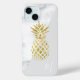 Fügen Sie mit diesem schicken und stilvollen Gehäuse eine Touch tropischer Eleganz hinzu. Dieses moderne und auffällige Gehäuse mit weißem Marmorboden und einem goldenen Ananas-Akzent im Glitzer ist ein Hingucker. Personalisieren Sie es mit Ihren Initialen für eine einzigartige Touch.