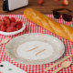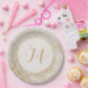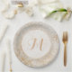 Monogramm aus weißem und goldfarbenem Sparkon Pappteller