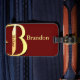 Golden Monogram Letter B mit anpassbarem Vor- und Nachnamen. Die Hintergrundfarbe kann geändert werden.