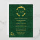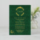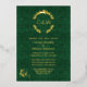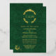 Verzierte Goldfolie Hochzeitseinladung in einem eleganten grünen Damast mit einer goldenen Folie Blumenkrautdekoration, oben, mit den Monogrammen des Paares. Personalisieren Sie den Folientext nach Ihren Hochzeitsbedürfnissen.