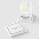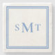 Erstellen Sie Ihre eigenen, blau-weiß dreiteiligen Monogramm-Untersetzer. Einfach mit individuellen Initialen in eleganter minimalistischer Typografie personalisieren.