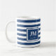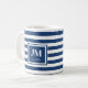 Monogramm blaue und weiße Streifen Kaffeetasse