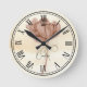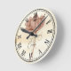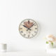 Niedlicher Erdtonuntergrund, Aquarellbilder mit braunen und beigen Blumen, Kontrast zu schwarzen Uhrenhänden.