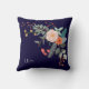 Ein bunter Spray der grafischen botanischen Blumen verzieren dieses Throwkissen und er kann mit drei Monogramminitialen personalisiert sein. Der Hintergrund ist ein reiches Marineblau.