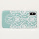 Extravagantes, weißes Damast-Muster auf egshell blue Anpassbarer Hintergrund Eleganter Vintager französischer Hochzeitstil Barock-Damast-Muster. Klicken Sie auf Anpassen, um die Hintergrundfarbe von blau auf eine beliebige Farbe zu ändern oder einfach mit Ihrem Initial zu personalisieren.